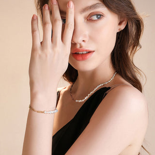 Freshwater Pearl Chain Armband 925 Silver 18K Guldpläterat