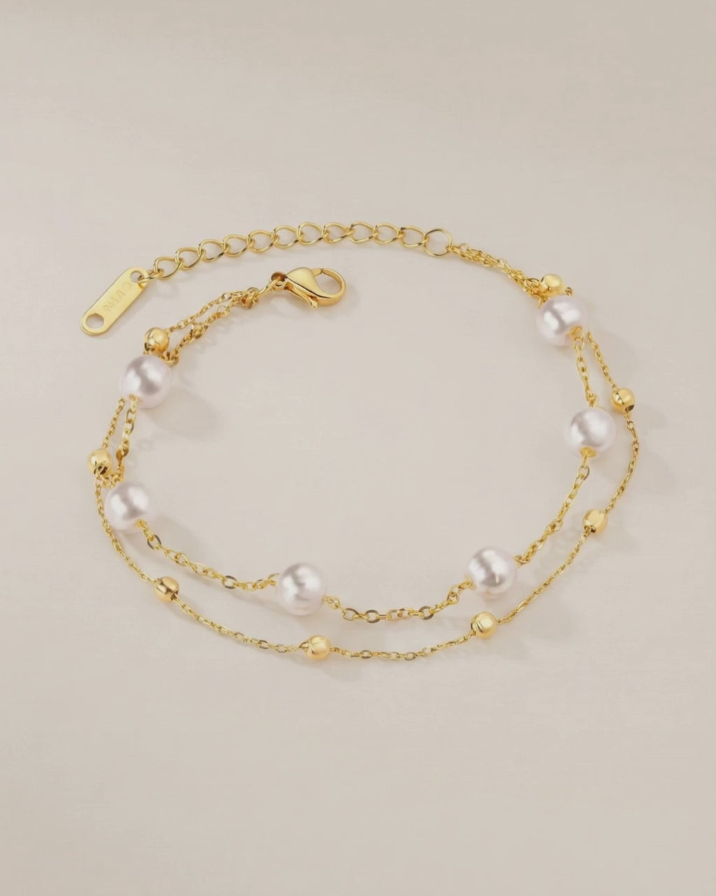 Curb Layer Pearl Chain Armband 18K Guldpläterat