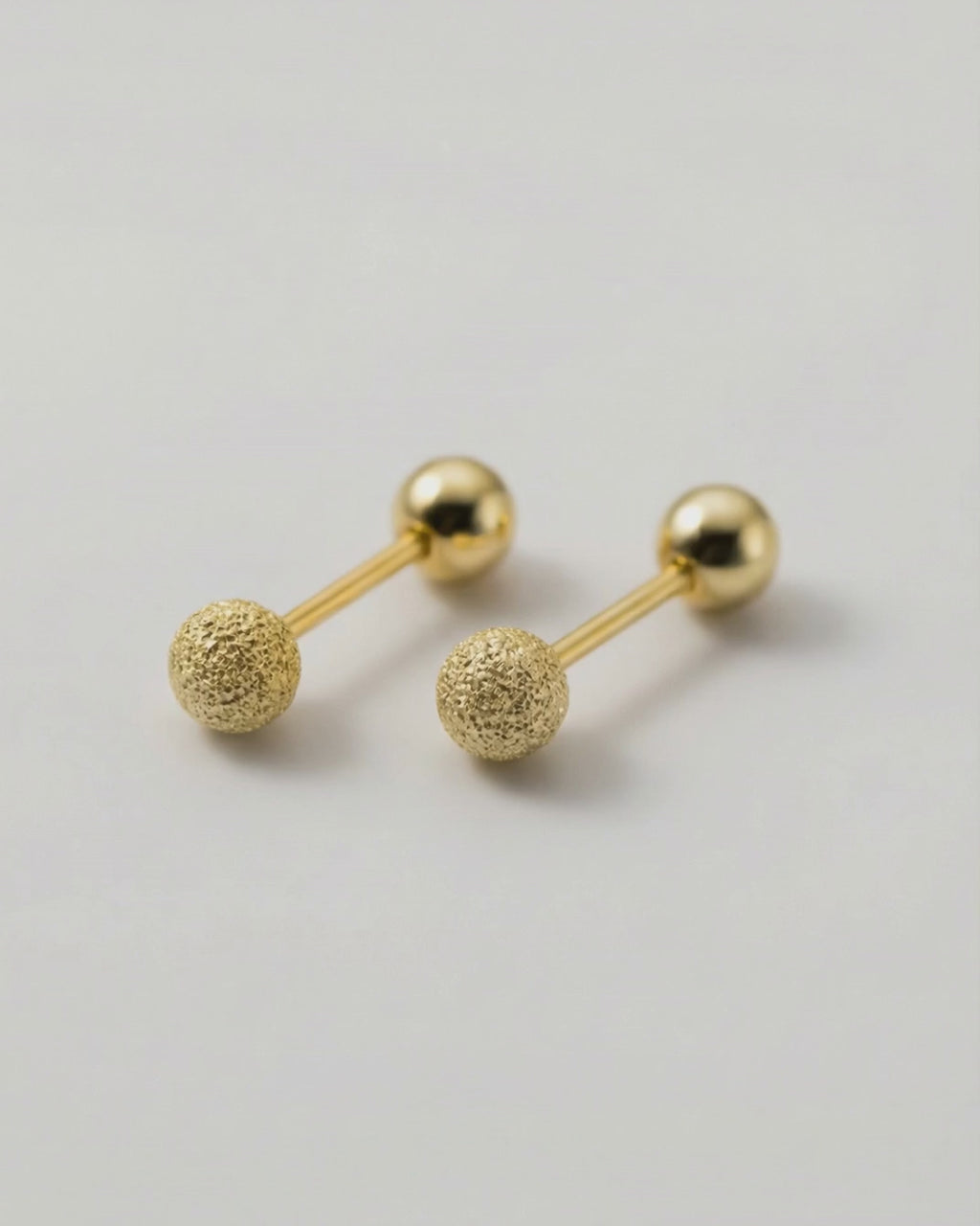 Small Frosted Beads Stiftörhängen 925 Silver 18K Guldpläterat