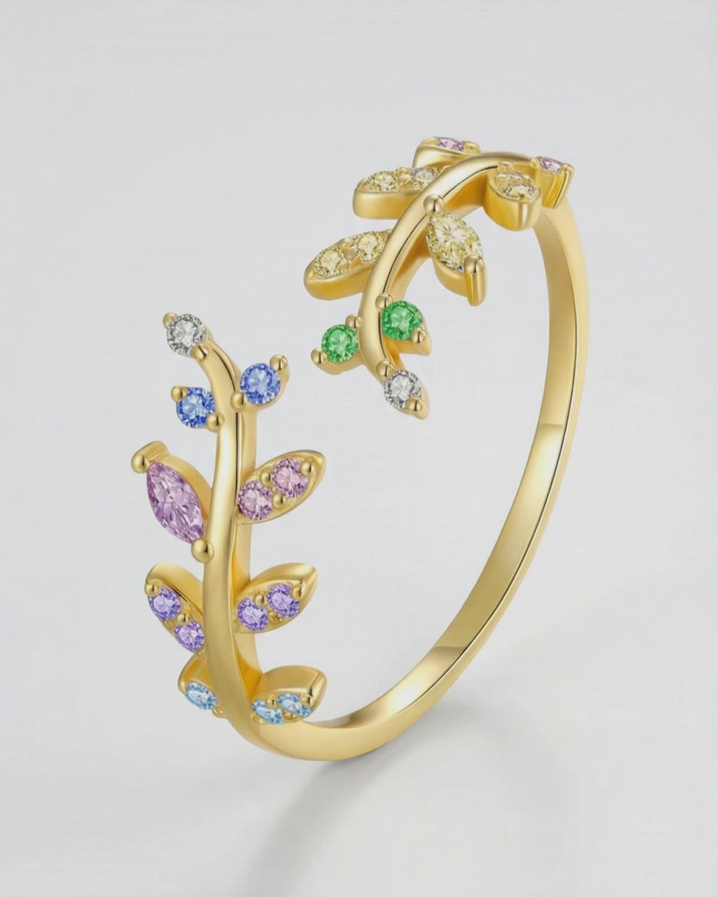 Summer Zirconia Leaf Ring 925 Silver 18K Guldpläterat