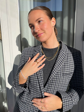 925 Sterling SilverSmycken ska behandlas med försiktighet. Vi rekommenderar att du tar av dig smycket före aktiviteter som kan utsätta det för fukt eller friktion (t.ex. handtvätt, städning och duschning) för att bevara smycket och förlänga dess livslängd.